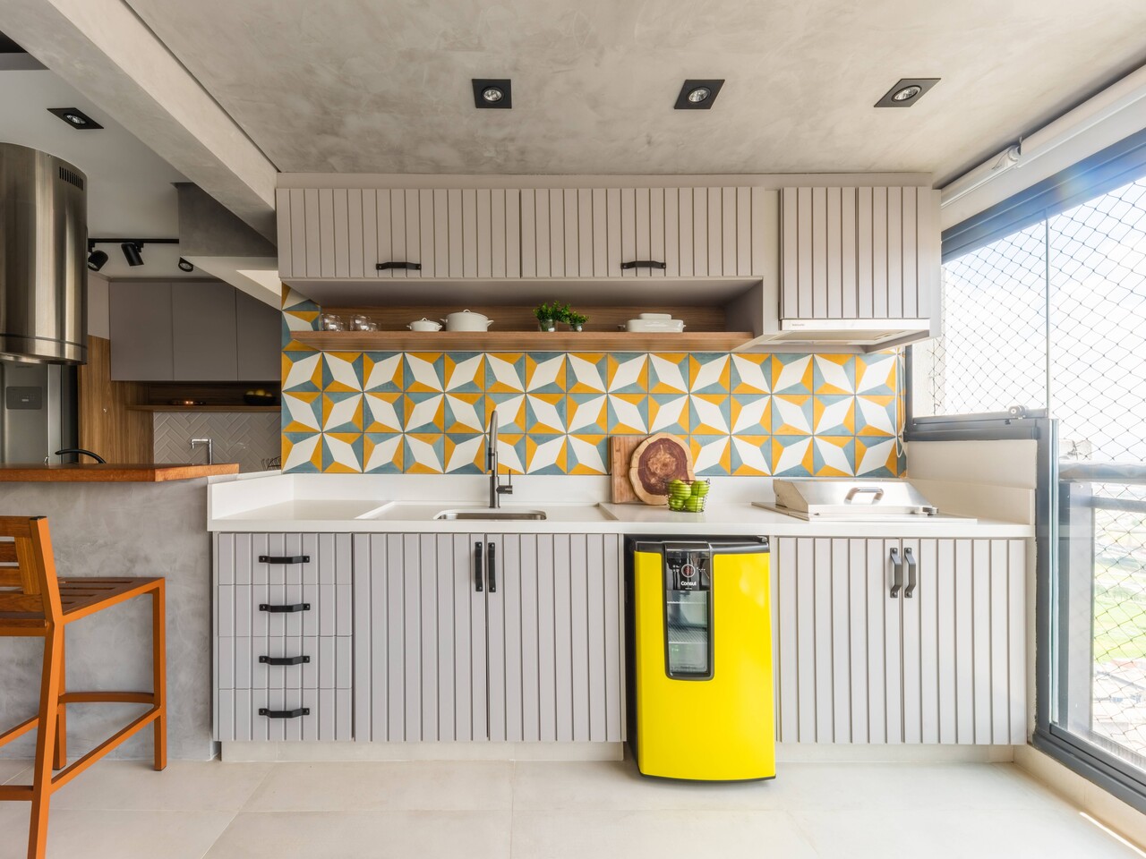 De acordo com o arquiteto Bruno Moraes, a proposta ? sempre trazer o azulejo colorido com a finalidade de criar pontos focais, acentuar ?reas espec?ficas ou mesmo revestir, por completo, paredes e m?veis, sempre com a proposta de revelar atmosferas singulares em cada espa?o. ?N?o apenas os azulejos em si, mas as cores vivas ganharam abertura na arquitetura de interiores, especialmente no per?odo p?s pandemia, quando uma grande maioria refletiu sobre a import?ncia de contar com uma cartela variada de tons, e n?o apenas os neutros, como no passado. E essa ressignifica??o foi reintroduzida em v?rios elementos, tanto quanto os revestimentos, como pinturas e marcenarias, entre outros?, enfatiza.