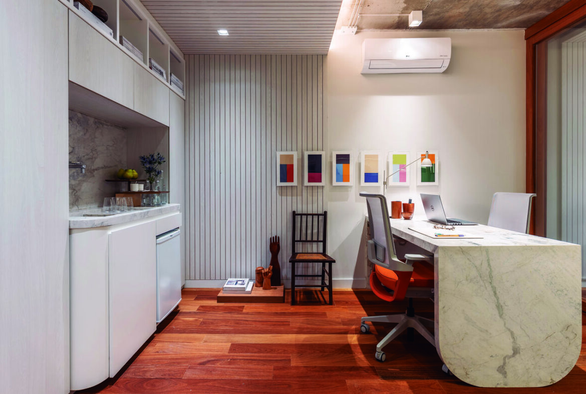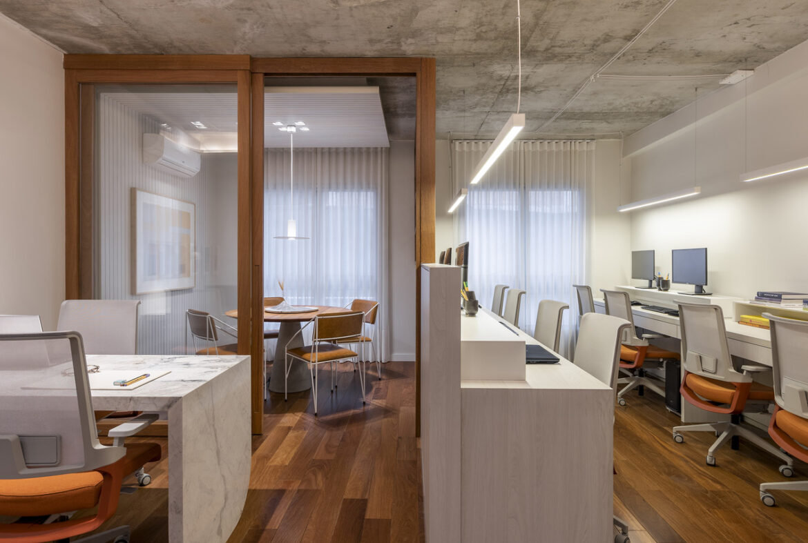 Ergonomia e eleg?ncia marcam projeto de escrit?rio h?brido e coworking