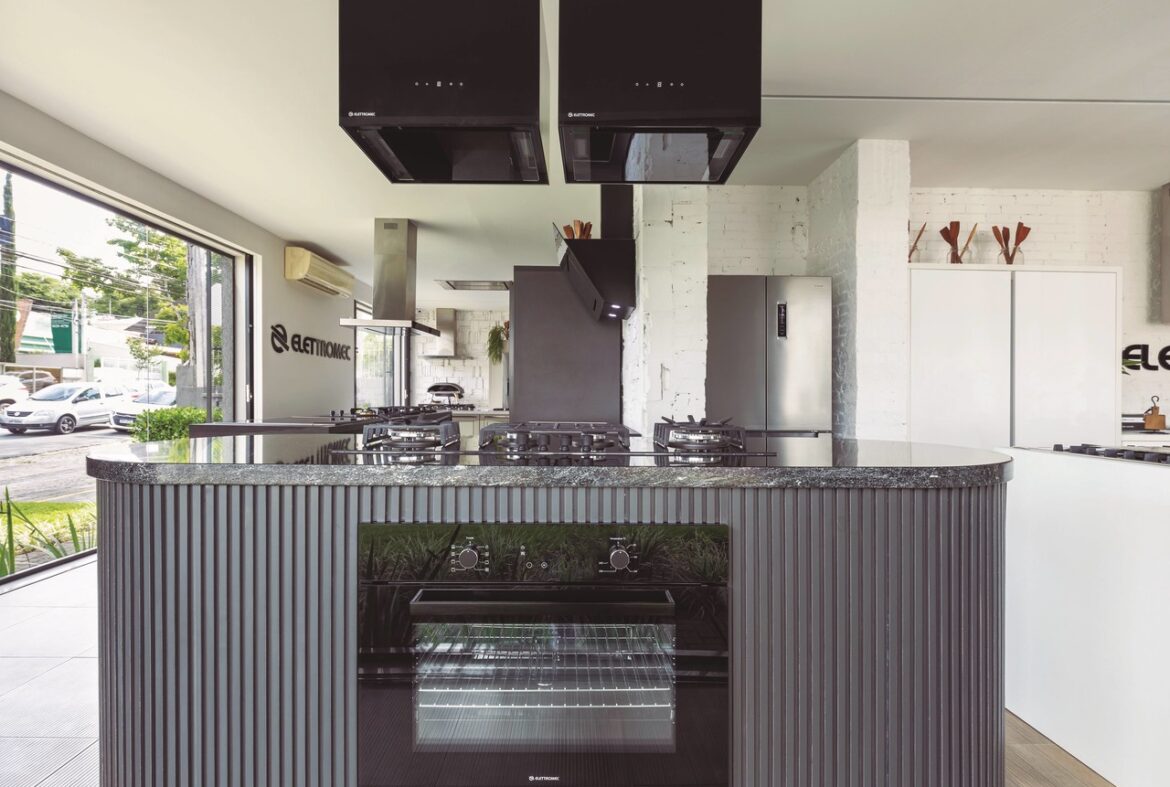 decorar + | Suelen Pazirotto | Elettromec Inspirada pela cole??o Vetro de eletrodom?sticos da Elettromec, a arquiteta Suelen Parizotto criou uma cozinha totalmente preta para o showroom da marca na [...]