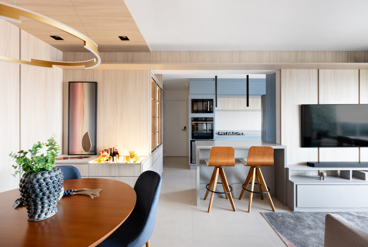 Integra??o, cores neutras e estilo contempor?neo definem ap? de 105m?