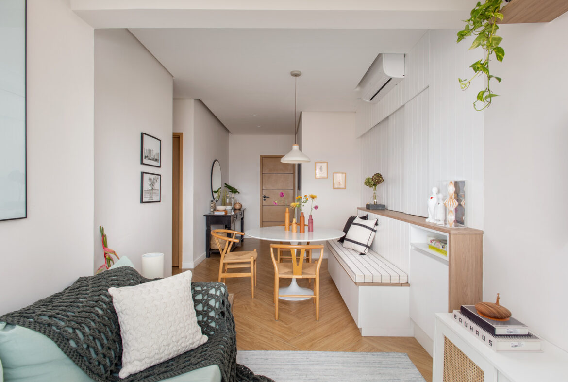 Com 45m? e marcenaria como aliada, o projeto surpreende ao esconder a lavanderia na sala, criar uma ilha gourmet e otimizar ao m?ximo o espa?o dispon?vel Na movimentada Vila Mariana, [...]