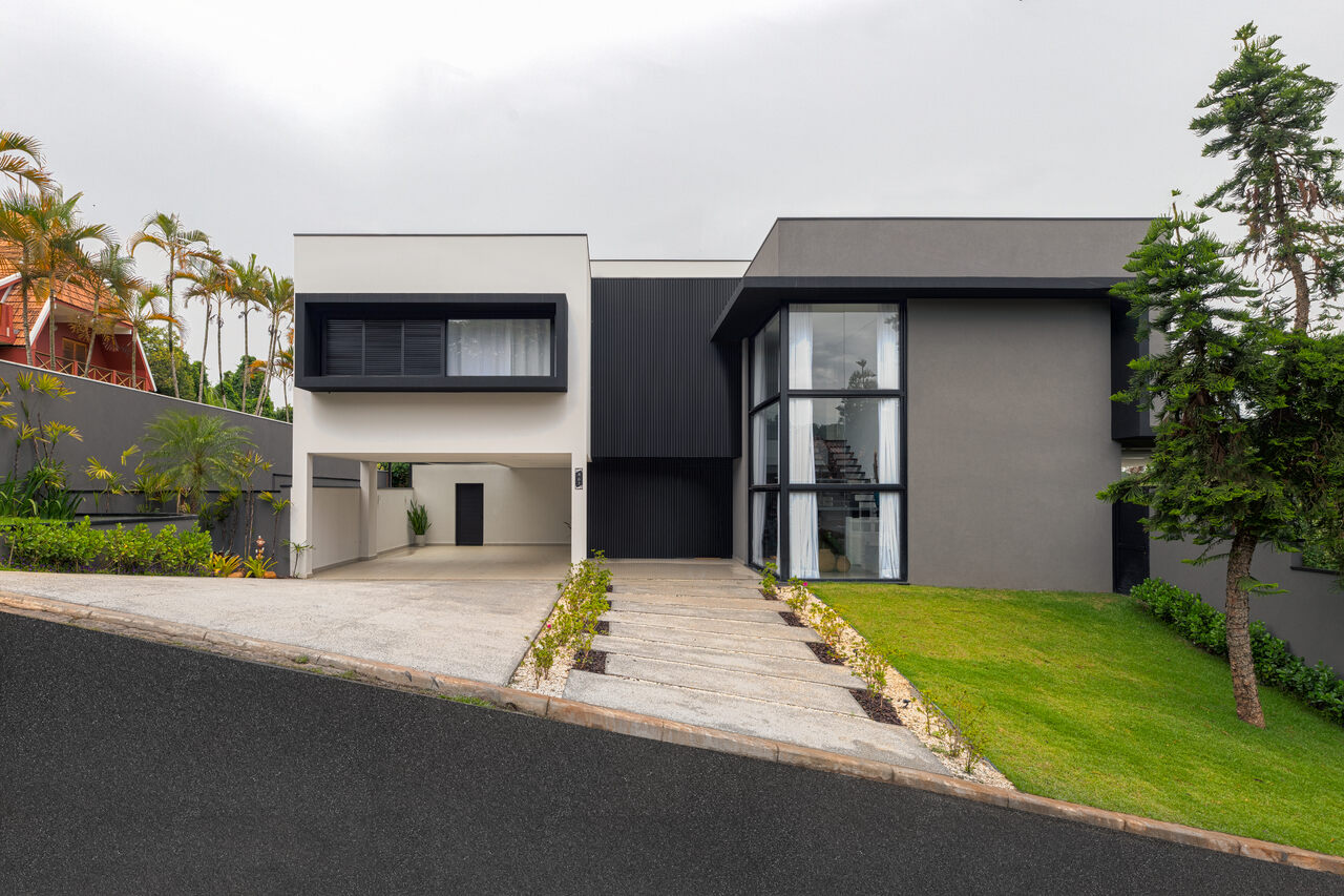 Projetada para uma fam?lia em busca de um ref?gio tranquilo, esta resid?ncia de 488 m? na Granja Viana une sofistica??o e funcionalidade. O projeto foi desenvolvido a partir de um terreno com desn?vel, cuja solu??o arquitet?nica evitou m?ltiplos andares, mantendo a casa com dois n?veis e respeitando a vegeta??o j? existente.