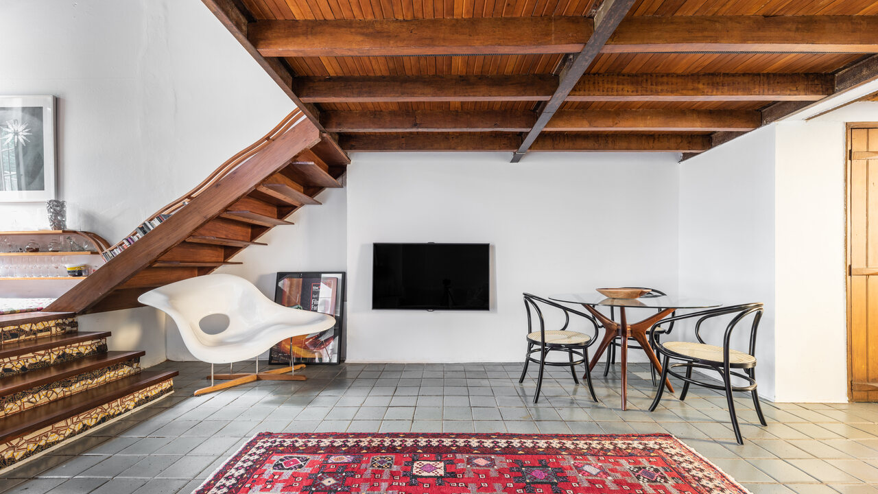 O projeto de interiores, tamb?m assinado pelo escrit?rio, conta com pe?as que valorizam o design brasileiro e trazem conforto para o espa?o, a exemplo da poltrona Mole de S?rgio Rodrigues. Alguns itens do dono do im?vel foram reaproveitados e outros, garimpados.