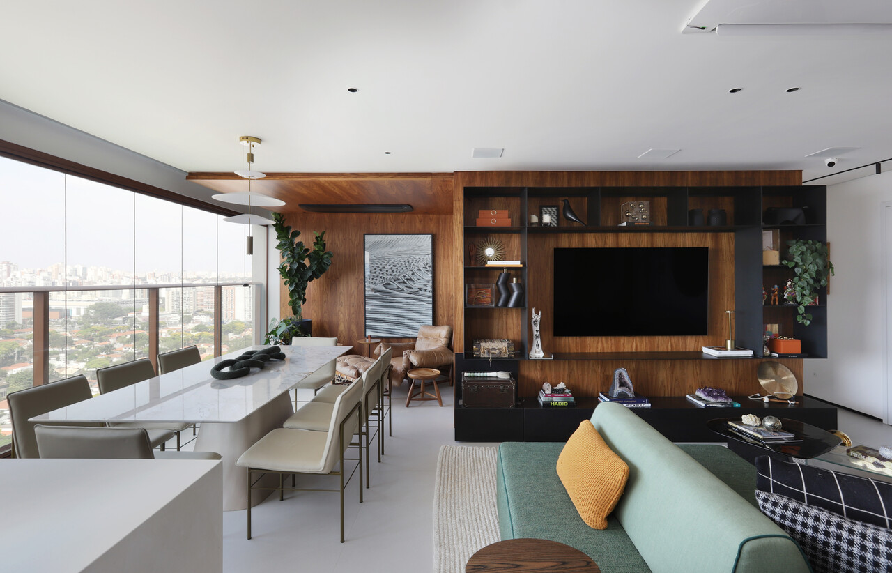 Mobili?rio personalizado e revestimentos sob medida valorizam o apartamento da arquiteta Dudi Duarte