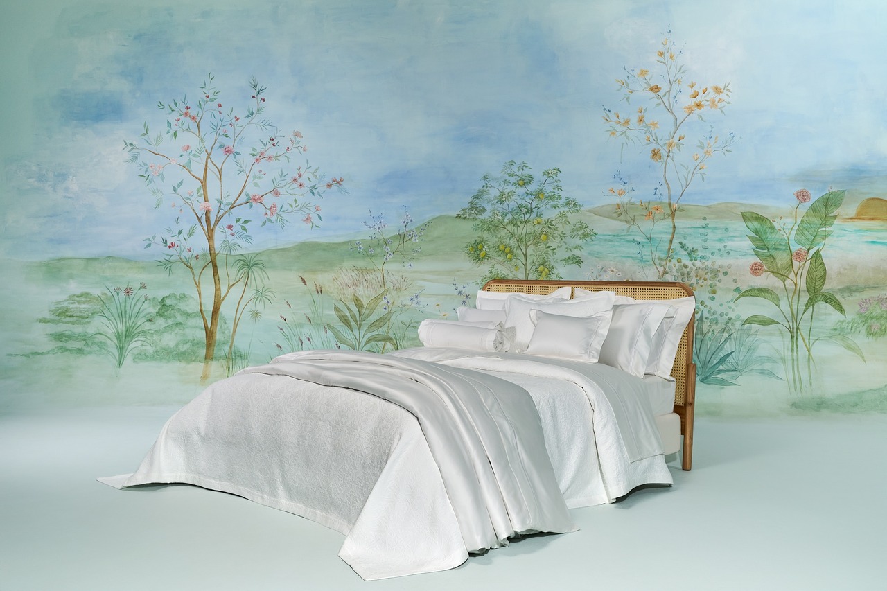 Para quem gosta de algo mais cl?ssico, a cole??o Fattoria, remete a estamparia francesa, Toile de Jouy, com cenas campestres, pastorais e at? buc?licas, tais como: casais, piqueniques, p?ssaros e f?bulas. A linha chega em fibra de bambu, com toque extremamente aveludado, destacando sua maciez. Possui capacidade termorreguladora, por oferecer uma estrutura porosa e favorece a evapora??o da umidade. Possui tamb?m propriedades antial?rgicas e antibactericida. A fibra cont?m um agente, que impede que as bact?rias se cultivem na fibra. Outra vantagem ? de ser uma grande aliada no cuidado contra o frizz no cabelo, reduzindo o atrito que causa o aspecto indesej?vel.