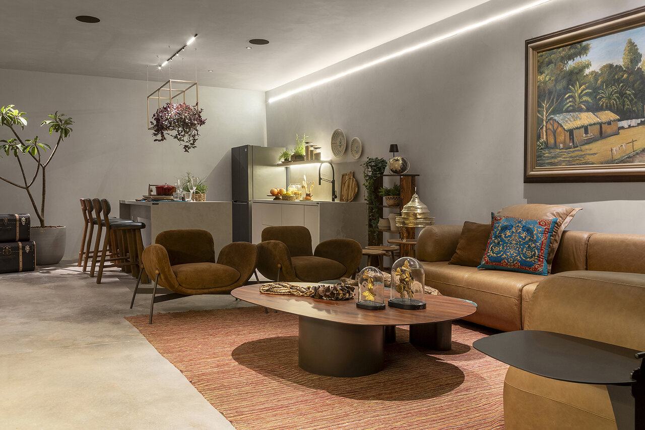 Com m?veis cuidadosamente selecionados, todos rec?m-lan?ados pela Salva, o espa?o re?ne pe?as dos designers Samuca Gerber e Fabr?cio Ronca. Feito de madeira de reflorestamento e couro biodegrad?vel, o mobili?rio n?o ? apenas uma escolha est?tica, mas um compromisso com a sustentabilidade, respeitando a origem natural dos materiais e promovendo pr?ticas de reciclagem.