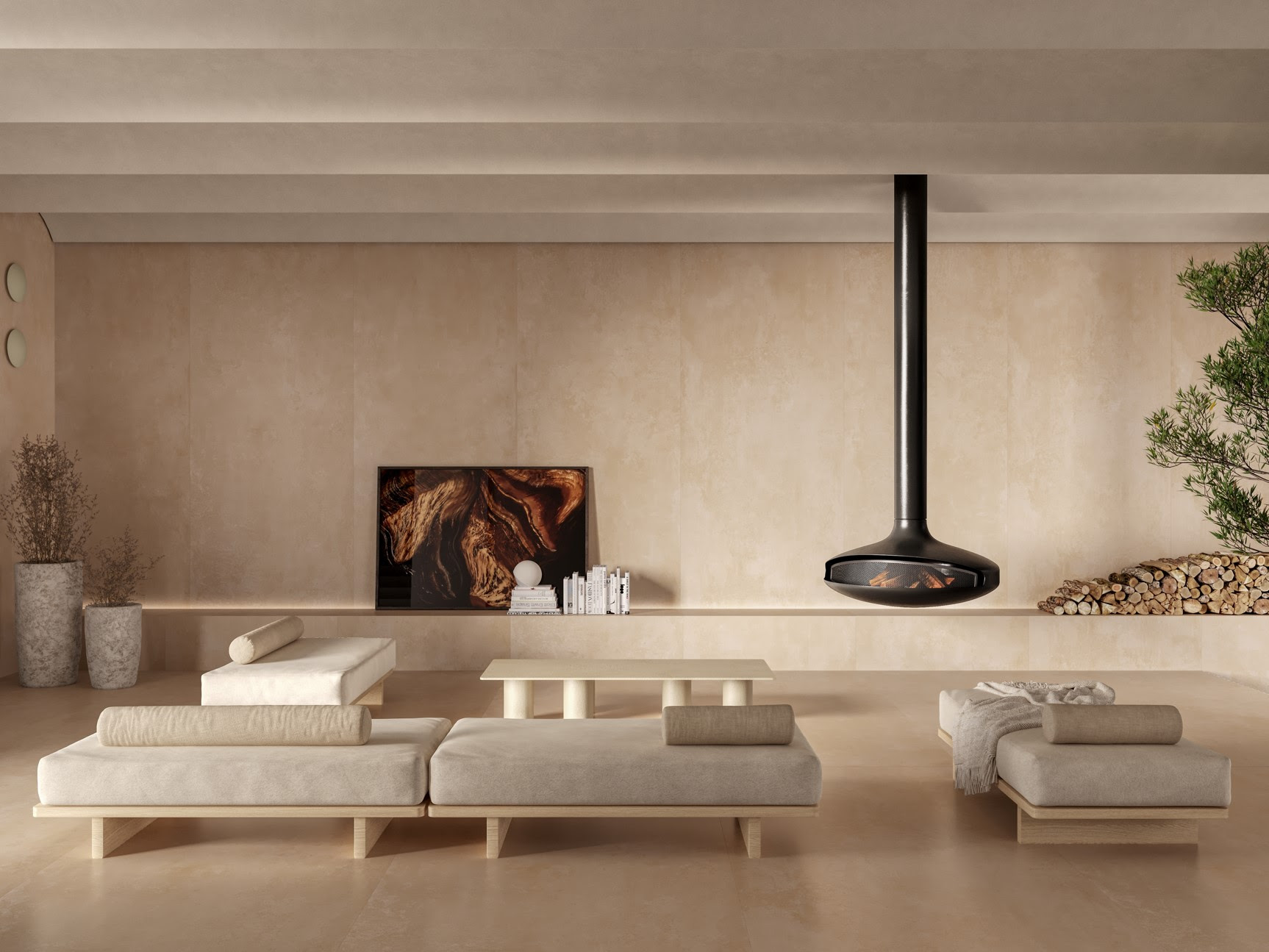 Na vers?o SuperFormatos, com pe?as que medem 120 x 250 cm, a cole??o evoca a apar?ncia destonalizada das rochas