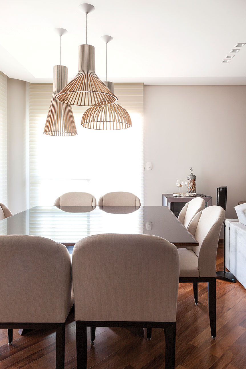 ?A cliente possu?a muitas pe?as boas, que foram compradas quando ela adquiriu o im?vel. As aproveitamos, mas trocamos os tecidos escuros para adequ?-las ?s novas cores do projeto?